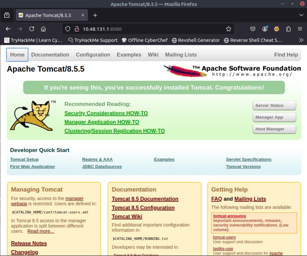 #TryHackMe #WebExploitation #ApacheTomcat #PrivilegeEscalation #CronJobs #CTF #Pentesting ```